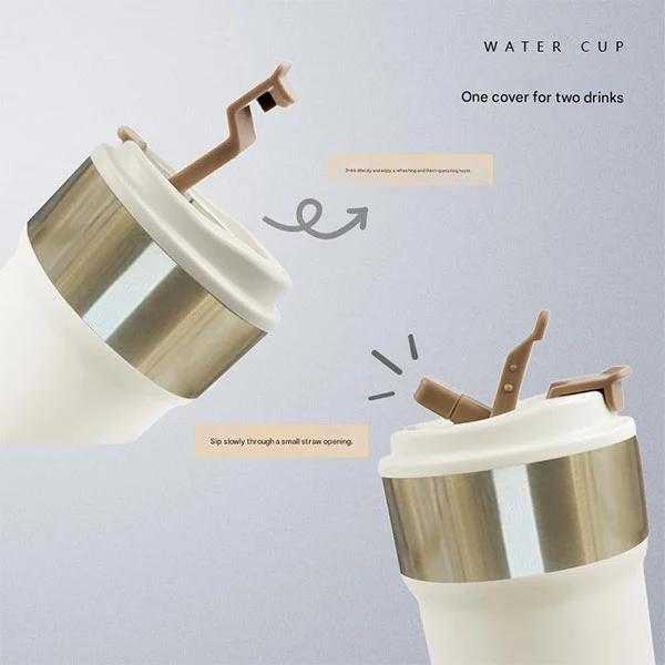 17oz-ko Travel Tumbler hauts-estalki batekin hornituta dago eguneroko erabileran hauts txikiak, intsektuak eta bestelako hondakinak eror ez daitezen. Edari bikoitzeko diseinua ere badu.