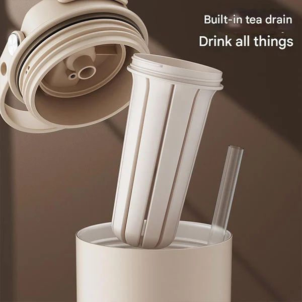 Kontu handiz diseinatutako kopa heldulekuaren kurba eskuaren kurbara egokitzen da, helduleku egonkor eta erosoa eskainiz. Heldulekuaren eta edalontziaren gorputzaren arteko konexioa isolamenduarekin diseinatuta dago, beraz, heldulekua duen BPA gabeko kafe-katiluak edari beroak baditu ere, eskuko gunea freskoa, segurua eta dotorea da oraindik.
