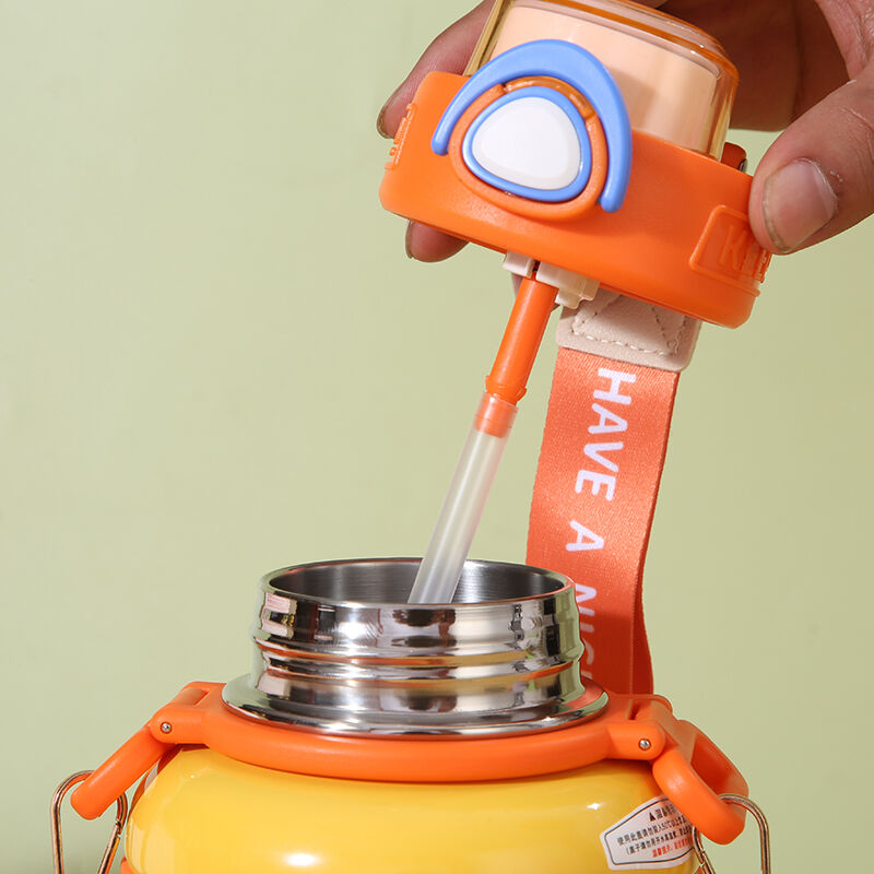 Hutsaren geruza horma bikoitzearen artean ezartzen da bero eraginkorra eta hotz atxikipena bermatzeko. Tapa BPA gabeko PP material berritik lantzen da. Ihesak ekiditeko zigilu integrala du. Udaberriko estalkia irekitzen denean, ezkutuko lasto bat agertzen da puntu txiki batekin, sakatuta dagoenean automatikoki lastoa ateratzen dela.