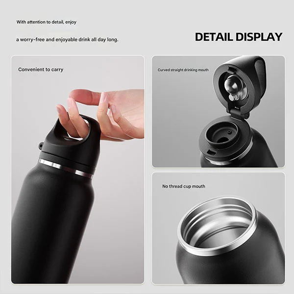Hutsean isolatutako botila gehienek ez bezala, Kudike-ren kanpoko botila aurreratuak ez du berunik, eta horrek ekoizleen eta kontsumitzaileen segurtasuna bermatzen du ingurumena babesten duen bitartean. Eta termo botila hau oso erraza da erabiltzeko, botoia sakatu behar duzu ateratzeko eta irteteko! Kopako gorputzaren diseinu zabal eta egonkorrari esker, erraz zurruta har dezakezu; Kopako hondo zabalak egonkortasuna mantendu dezake gainazal zakarretan ere!