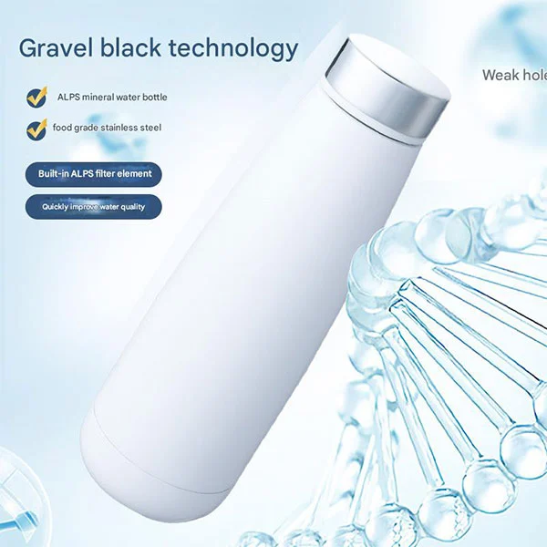 Zergatik ur batIsolatutako kopa araztea? Tapa biltegiratze eremua diseinatu dugu, eta barruan, ekologikoko material bereziak jarri ditugu - Alpeko mineral partikulak. Alpeko partikulak aluminioa, magnesioa, burdina, sodioa eta potasioa bezalako elementuetan aberatsak dira. Elementu horiek osasunerako onuragarriak dira eta uraren azidotasuna eta alkalitatea hobetu ditzakete. Ura edaten duzunean, urak partikula horietatik igarotzen dira arazketa lortzeko, apur bat alkalin bihurtuz. Horrek zure edateko ura seguruagoa da.