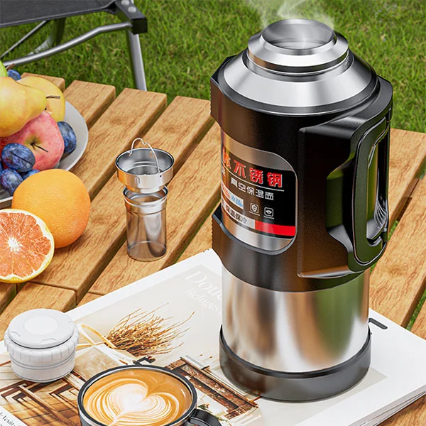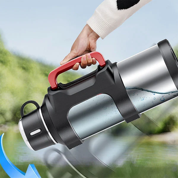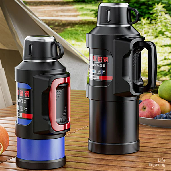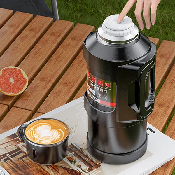 Thermos matrazeak goi mailako 316 altzairu herdoilgaitzez egina dago, garbia, ingurumena errespetatzen duena eta bakteriak mantentzeko aukera gutxiago. Sakatu ura askatzeko. Tapa kopa txiki gisa ere erabil daiteke, komenigarria eta erraza da. Ura edateko arazoa saihesten du zuzenean gehiegizko pisu handietatik edo lapikoetatik. Erabili ondoren, zuzenean tapa gainean jar daiteke espazio gehiegi hartu gabe.