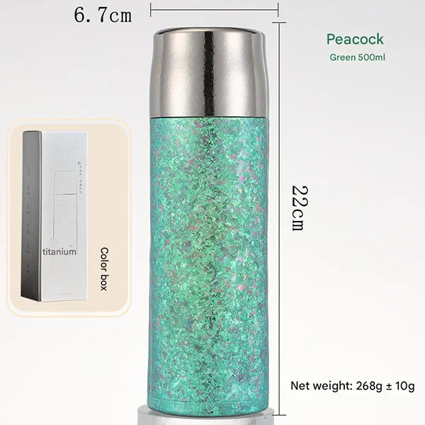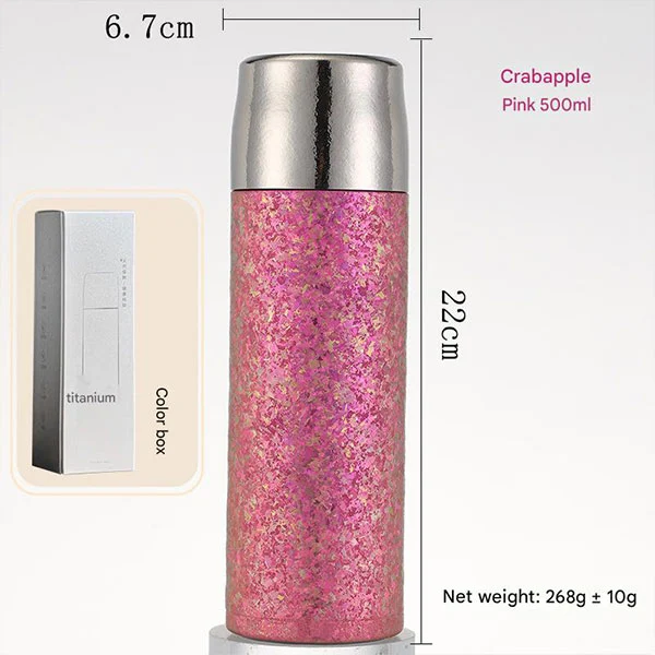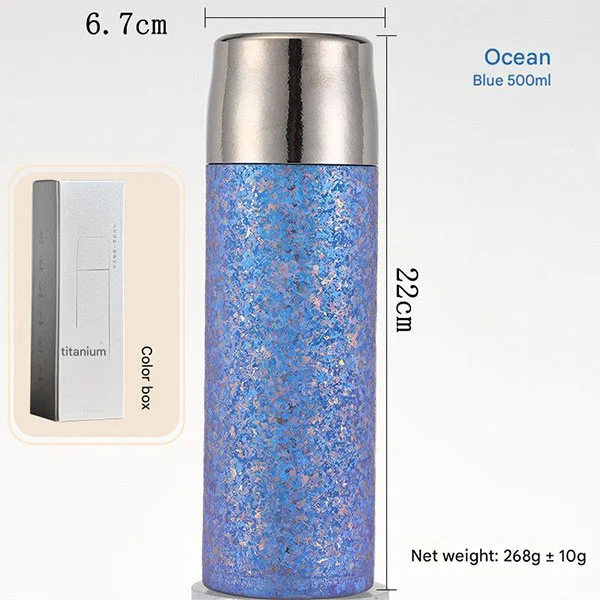 Titaniozko ur-botilek geruza bikoitzeko hutsean isolatzeko diseinua hartzen dute. Gure metalezko ur botilak zure edarien isolamendu onena eskaintzen duela frogatu da, kola hoztua edo kafe beroa izan. Edari beroak 8 orduz eduki daitezke epel, eta edari hotzak 12 orduz. (Datu esperimentalak: Isolamendua: Gehitu ura 99 º C-ko giro-tenperaturan, eta tenperatura 60 º C-tik gorakoa izango da isolamenduan 6 ordu igaro ondoren; Hoztea: Gehitu ura 0 º C-ko giro-tenperaturan, eta tenperatura 5 º C-tik behera egongo da isolamenduan 6 ordu igaro ondoren.)