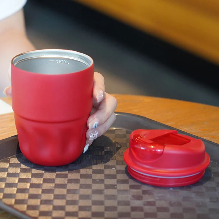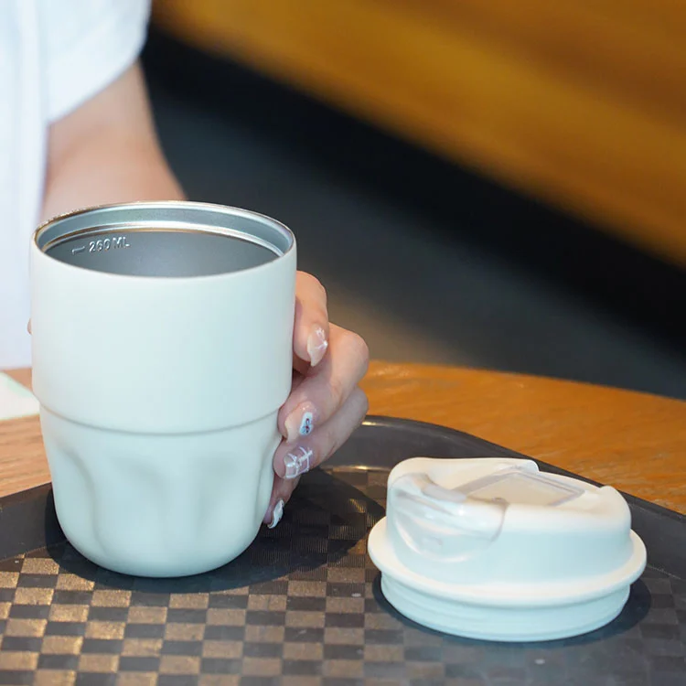 Bidaia mugak itxura dotorea du petalo itxurako maskorren diseinuarekin, moda joera liderra. 18/8 altzairu herdoilgaitzez egina dago, eta horrek elikagaien segurtasuna bermatzen du. Lerro leunak tapa eta kopa gorputza modu egokian integratzen dituzte. PP estalkia material berriekin eginda dago, birziklatutako materialik gabe, elikagaien segurtasun estandarrak ere topatzea. Flip-Open Diseinu sinpleak esku bikaina eskaintzen du eta esku bakarreko eragiketarako egokia da. Kopako irekitzearen diametro handiak oso erosoa da izotz kuboak gehitzea. 360 ° silikonazko eraztunak ez du ihesik norabide guztietan. Bi ahalmen, 260ml eta 450ml ditu, edateko beharrak asetzeko.